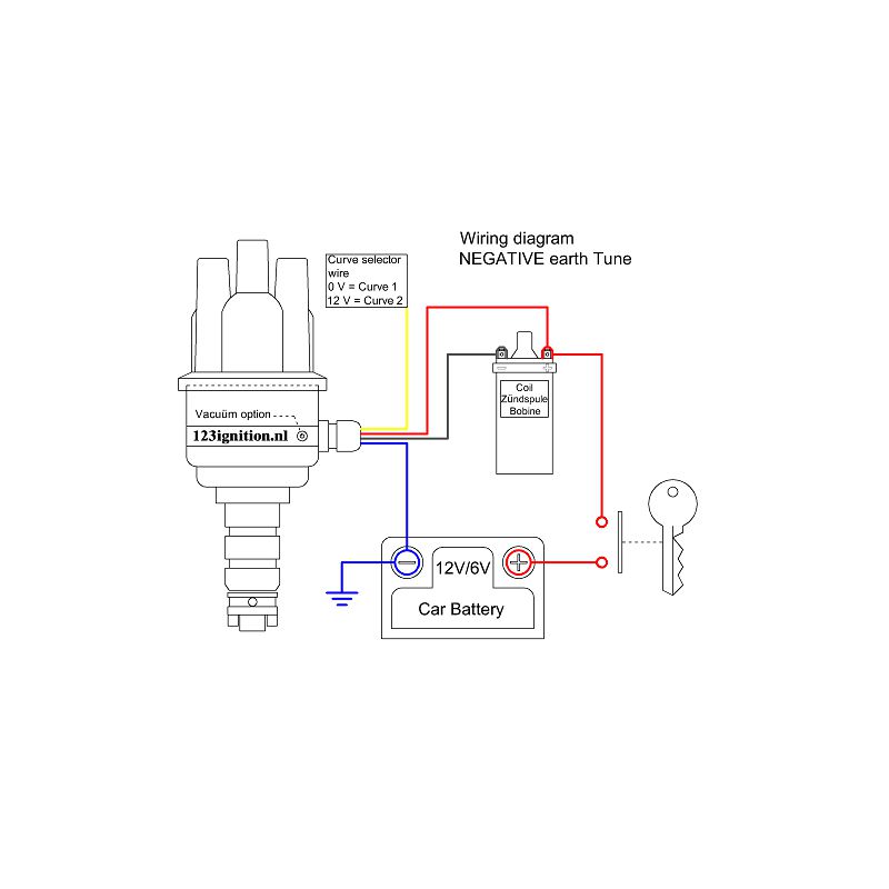 rot +6V oder +12V, schwarze '-' Zündspule, blaue Chassismasse, gelber Kurvenwähler
