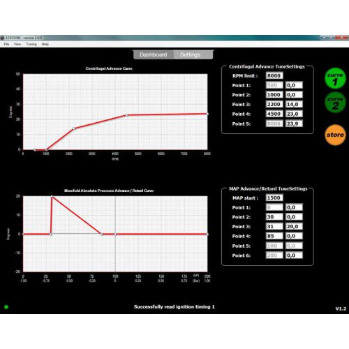 Selbst die Kurve (oder Verstell Kennlinie) Ihre 123/TUNE Zündung programmieren? Das kann mit USB Kabel und Computer. Für ein optimales Motortuning, oder wenn Sie einen Motor haben, für den es keinen Standardverteiler gibt. Mit Hilfe eines Computers können Sie die 123/TUNE Zündung einfach selber programmieren und ihr eine optimale Verstell Kennlinie mitgeben.