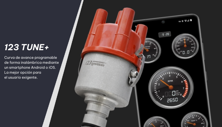 Una de las características más destacadas de 123ignition es su mantenimiento sin tiempo. Las piezas móviles, como los puntos originales, los pesos centrífugos, los resortes, los rodamientos y la membrana de vacío, han sido reemplazados por una sola pieza móvil: el eje central con el rotor. Los electrónicos internos proporcionan el avance correcto y el ángulo de residencia óptimo en toda la gama de revoluciones para obtener la máxima energía de chispa y rendimiento. No hay desgaste que pueda alterar la sincronización de 123ignition, una vez que está configurado, no tendrás que preocuparte por ello.