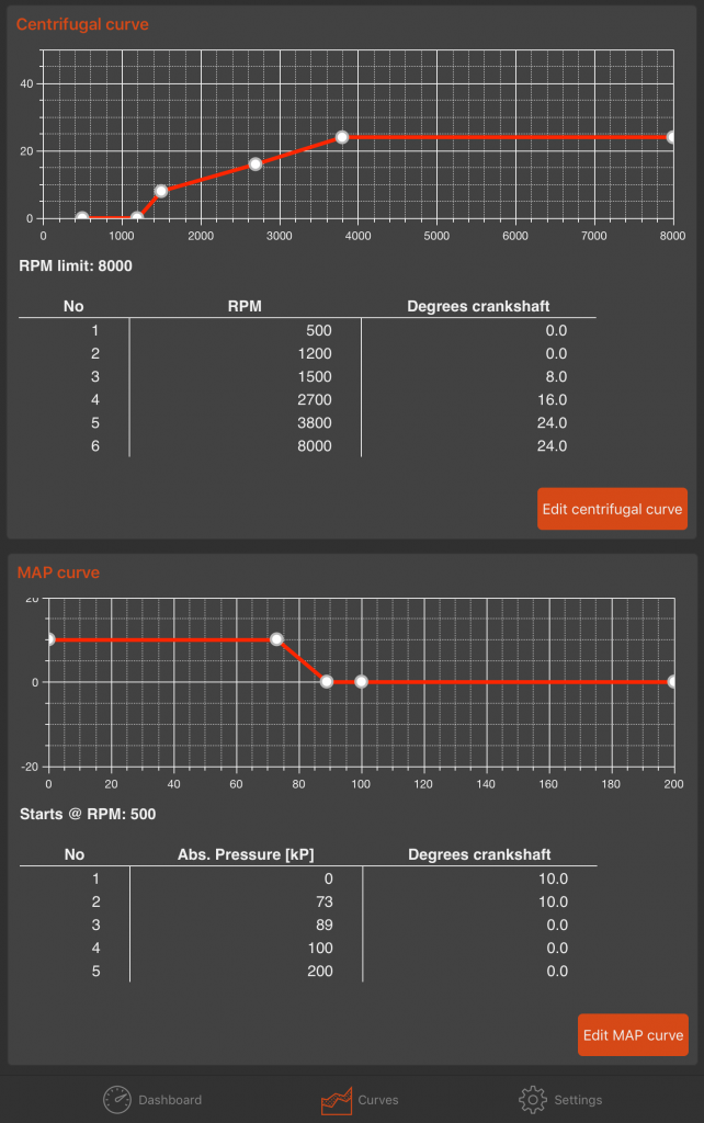 Regarding the vacuum curve, this is slightly more complex. 123ignition works with absolute pressure instead of relative pressure. The advantage of absolute pressure is that it also works at high altitude. With relative pressure, you would need to manually adjust the ignition when driving in the mountains, for example.
