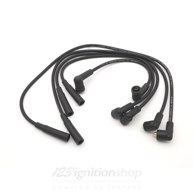 Ideaal in combinatie met de diverse 123ignition ontstekingen: koolstofkern bougiekabel set, met RVS draad om de kern gewonden (wirewound). Aan één zijde met haakse plug en aan de andere zijde een rechte plug.