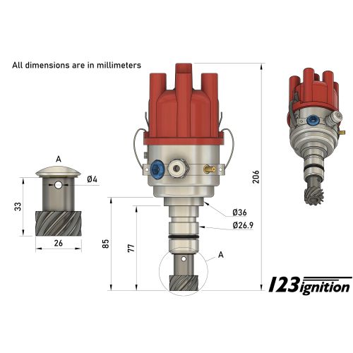 We raden u aan om de afmetingen van de 123/TUNE+ grondig te vergelijken met die van uw originele verdeler EN om de installatie handleiding zorgvuldig te lezen voordat u uw bestelling plaatst! In de installatiehandleiding staat verdere informatie over het inbouwen en installeren. Aan de hand van een aantal voorbeelden wordt stap voor stap beschreven hoe u de 123/TUNE+ kunt programmeren.